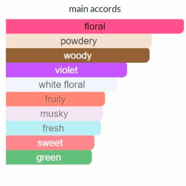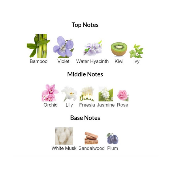 - نت میانی: ترکیبی از گلهای سفید (یاس، لیلیا، رزسفید و فریزیا)