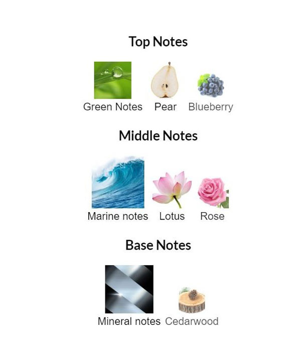 - نت های اصلی: گلابی، رایحه سبز، بلوبری