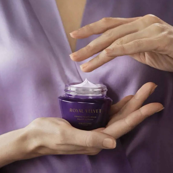 شبها، پس از پاکسازی کامل پوست، مقدار مناسبی از کرم را روی پوست صورت و گردن بهآرامی ماساژ دهید تا کاملاً جذب شود. برای نتیجه بهتر همراه با کرم روز و دور چشم سری رویال ولوت استفاده شود.